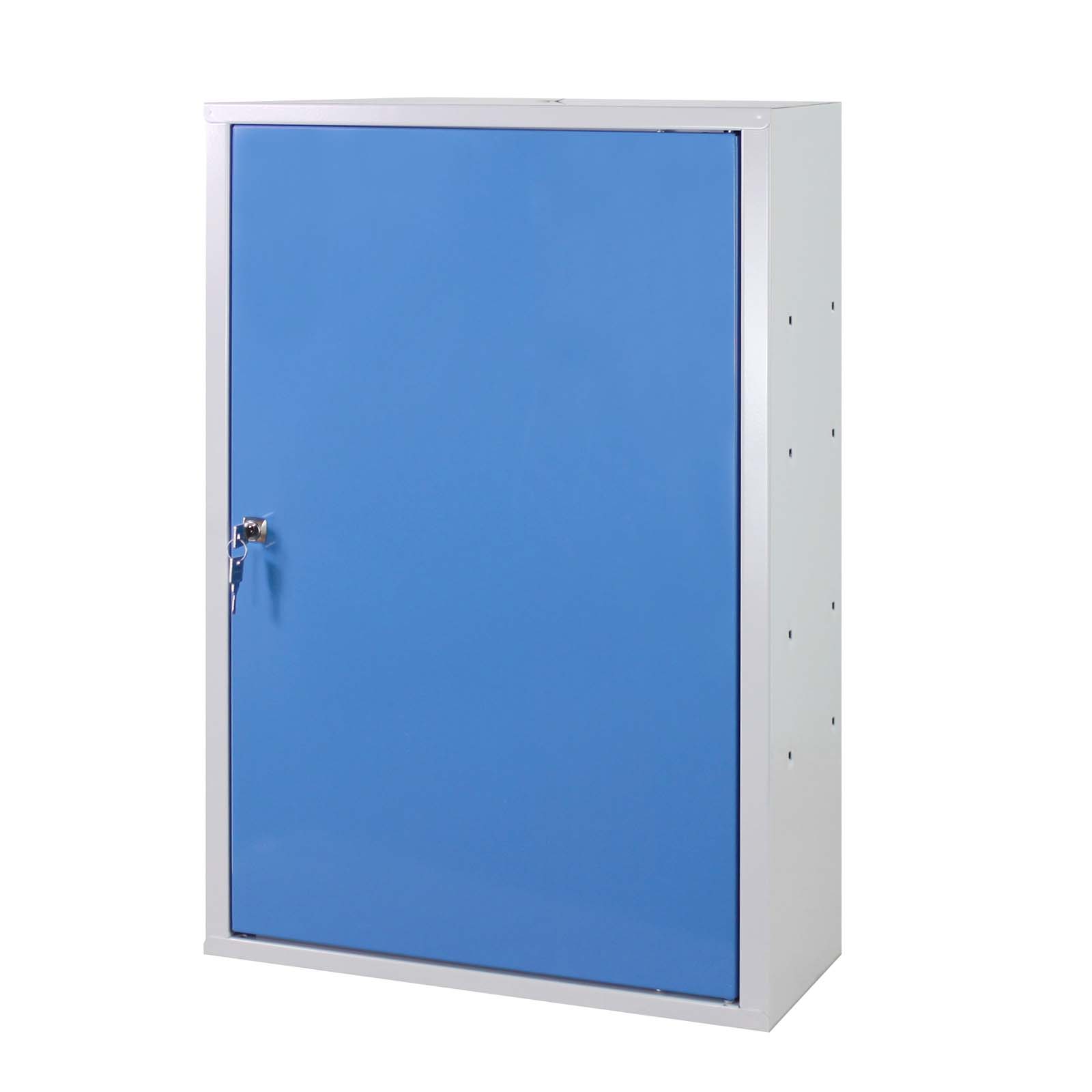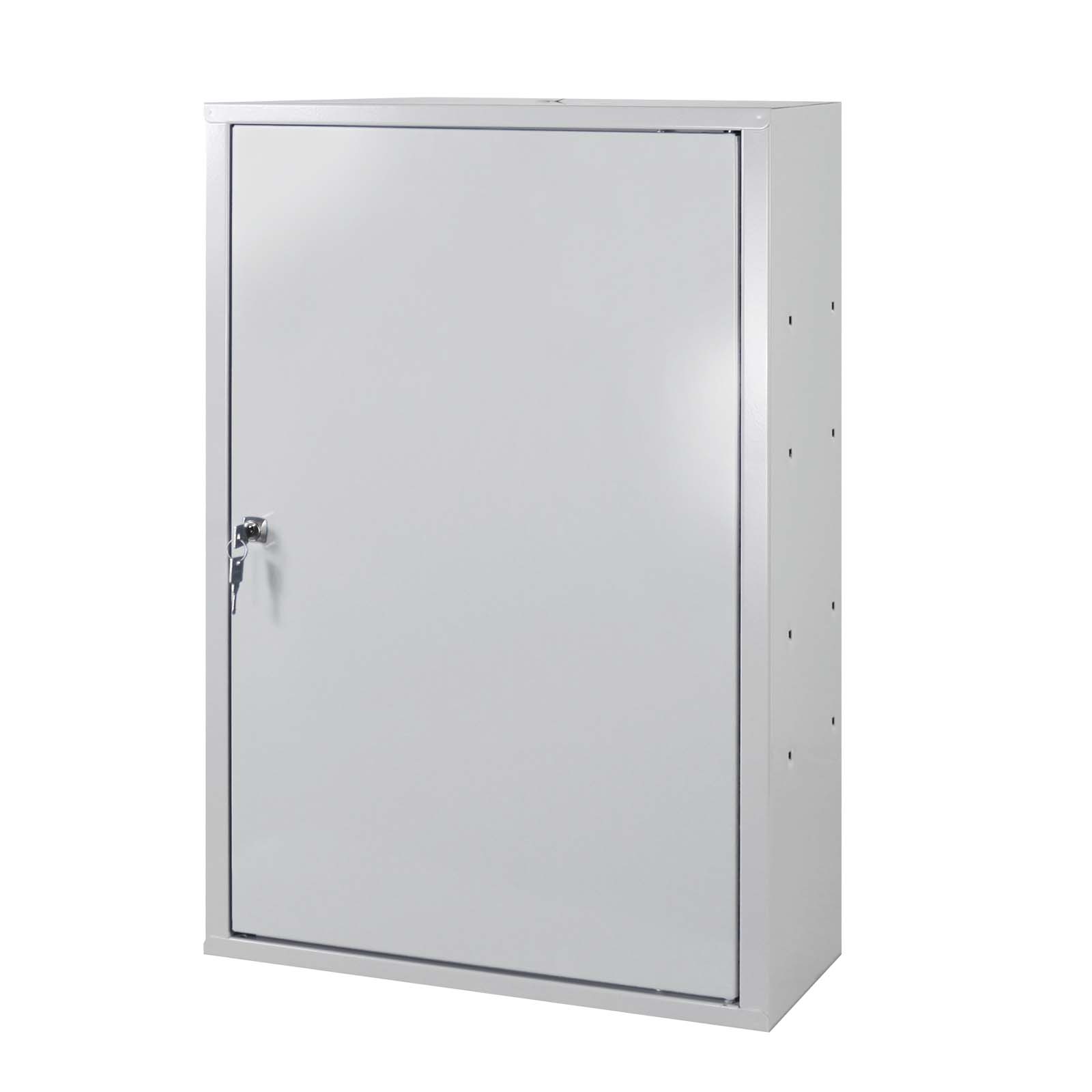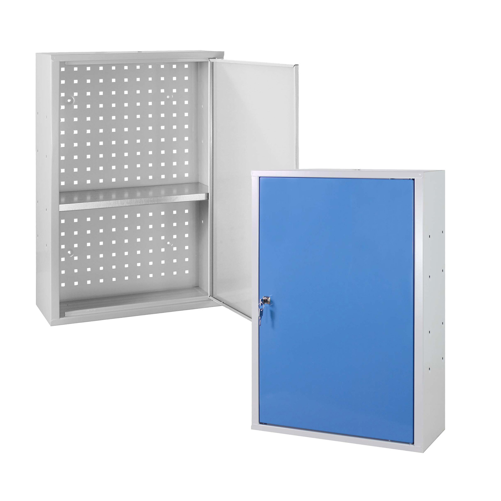 Der ADB Wandschrank besteht aus stabilem pulverbeschichteten Stahlblech. Er verfügt über eine Tür, die wahlweise links oder rechts angeschlagen montiert werden kann, und einen praktisch höhenverstellbaren Fachboden aus Stahl.